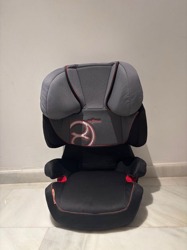 Detalles del productoSilla de coche Cybex Solution X2-Fix en color negro y gris con detalles en rojo.
