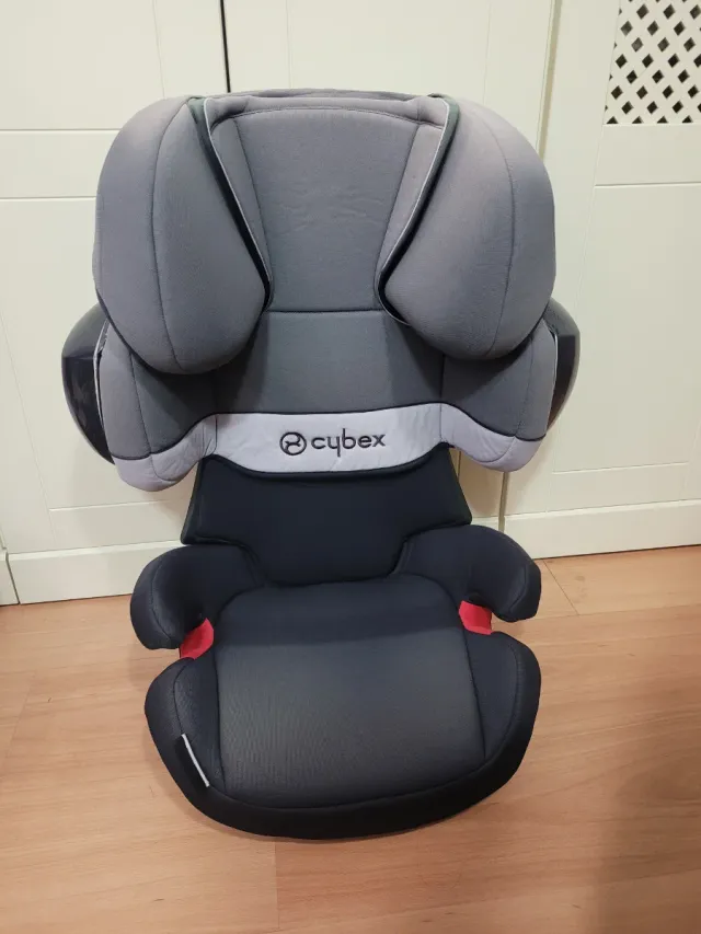 Detalles del productoSilla de coche Cybex X2 Fix para niños. Diseño en color gris y negro con detalles en rojo.