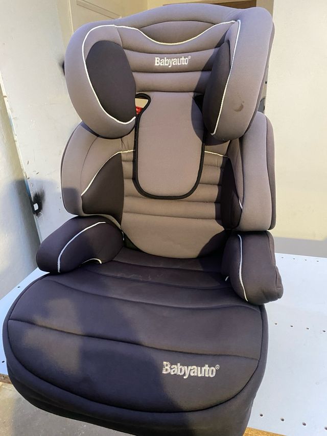 Silla de coche para niños de la marca Babyauto, en color gris. - Diseño acolchado para mayor comodidad. - Reposacabezas ajustable. - Funda extraíble y lavable.