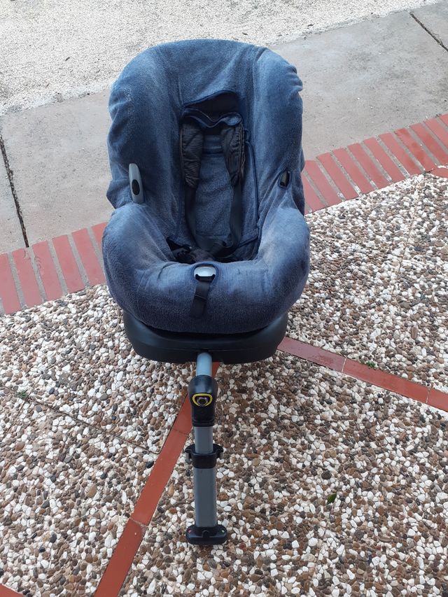 Silla coche Maxicosi con sistema anclaje isofix y pata de apoyo estabilizadora. Tiene funda lavable por higiene que tapa desgaste tapicería original. Grupo 1 y 2. De 9 a 18 Kg.