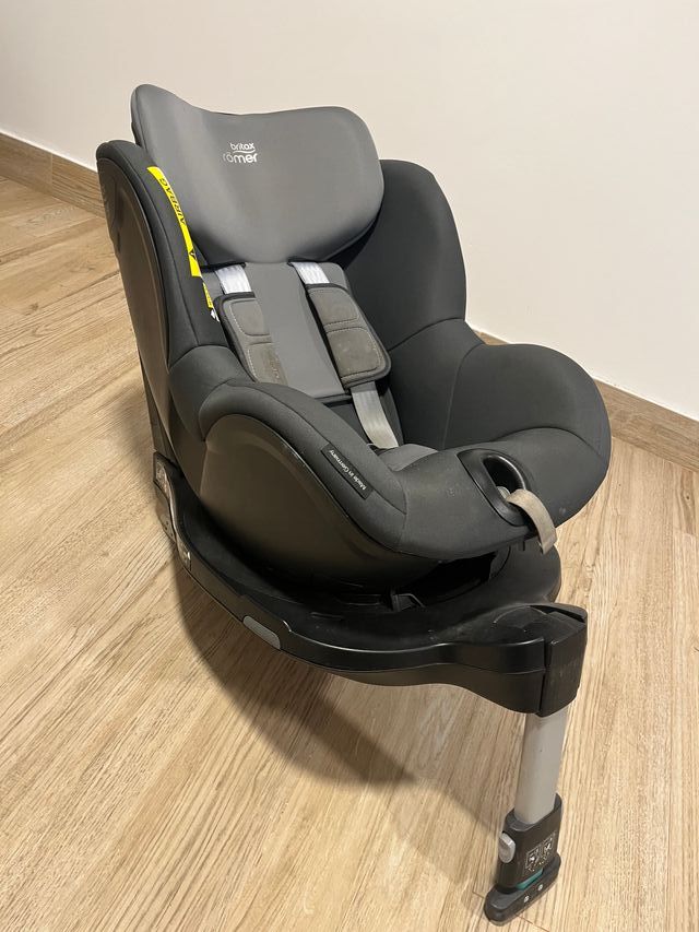 Detalles del productoSilla de coche Romer Dualfix en color gris oscuro y negro. Cuenta con un sistema de giro 360º para facilitar la colocación del niño.