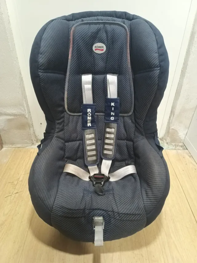Silla de coche Romer King, diseñada para la seguridad y comodidad. - Tapicería acolchada. - Sistema de arnés de 5 puntos. - Funda extraíble para lavado.