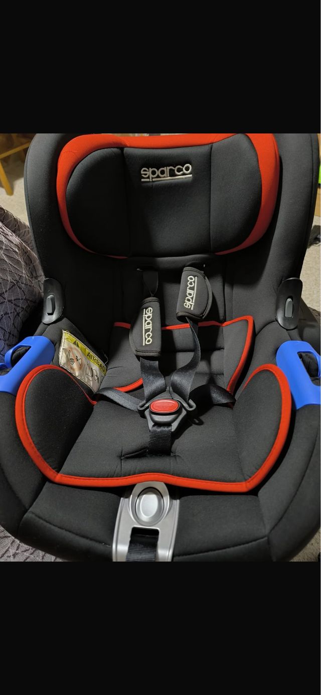 Detalles del productoSilla de coche Sparco en color negro, rojo y azul.