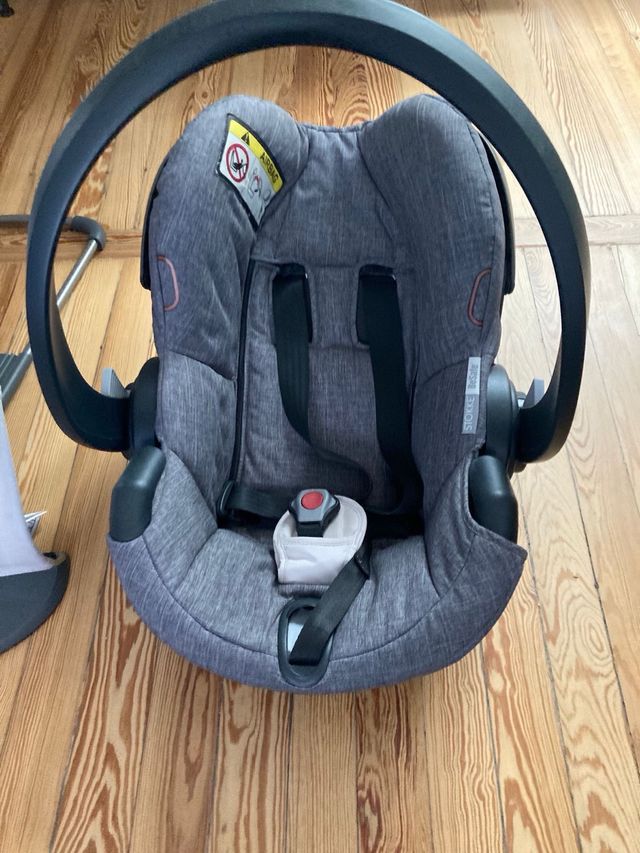 Detalles del productoSilla de coche Stokke en color gris jaspeado.