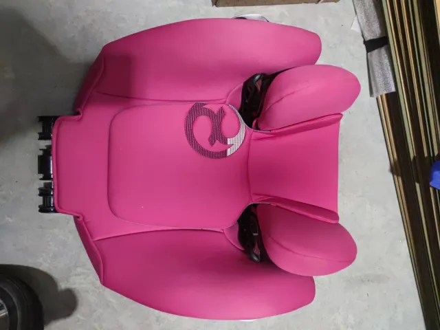 Silla de auto en color rosa con un diseño llamativo. - Tapicería acolchada. - Reposacabezas integrado.