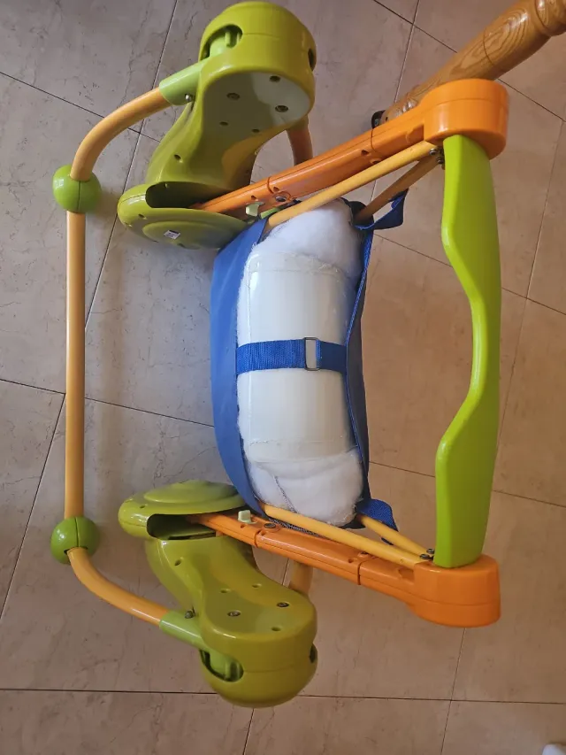 Silla de paseo para bebé con estructura de metal y plástico. - Asiento acolchado. - Capota ajustable. - Ruedas giratorias.