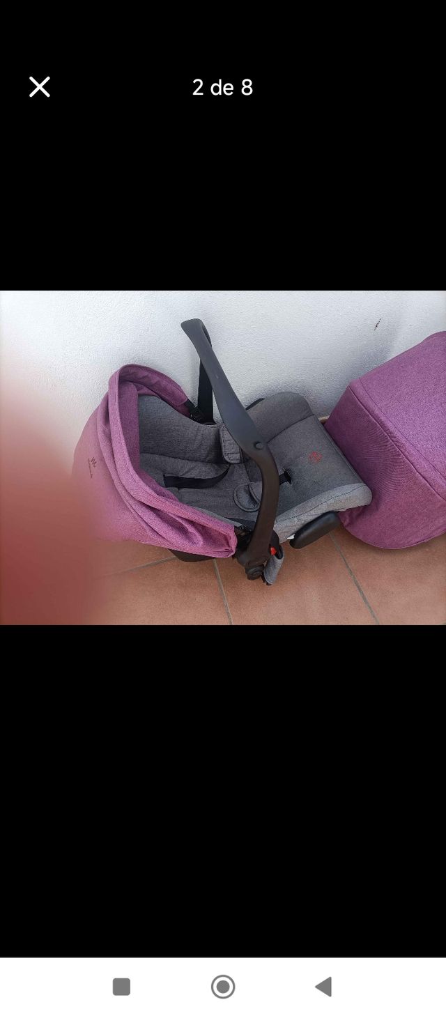 Vendo silla de coche para bebé usada, en buen estado. - Incluye capota. - Incluye 3 piezas, maxicosi, capazo y silla de paseo. - Color morado. - Tejido suave.