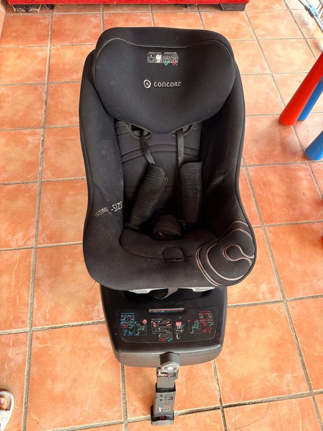 Silla de coche para bebé de la marca Concord, con base giratoria. - Color negro. - Sistema de arnés de 5 puntos. - Indicadores de instalación.