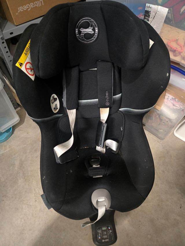 Silla de coche Cybex en color negro. Diseño moderno y seguro. - Tejido acolchado. - Cinturones de seguridad ajustables. - Logo de la marca visible. - Isofix