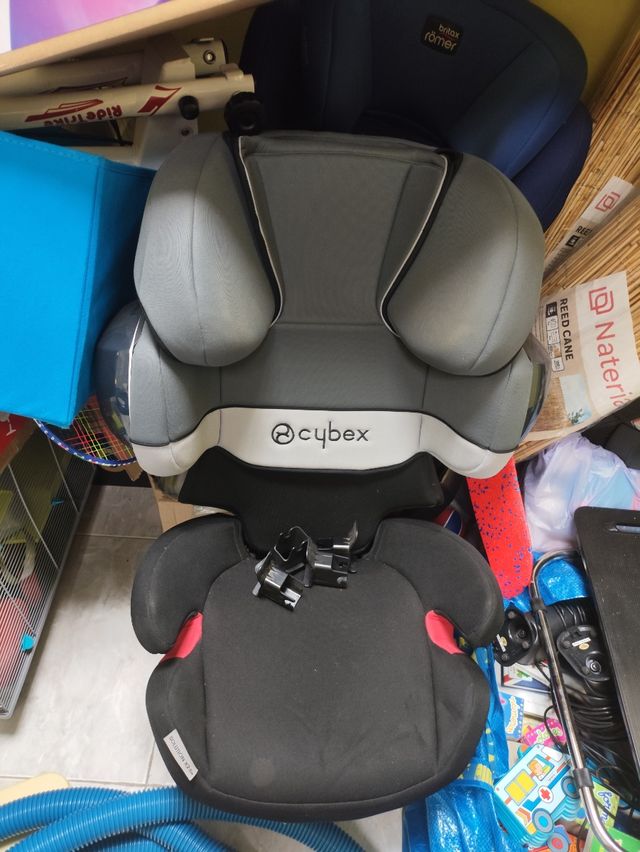 Silla de coche Cybex en color gris y negro. - Diseño ergonómico. - Reposacabezas ajustable. - Sistema de seguridad. - Funda extraíble y lavable.