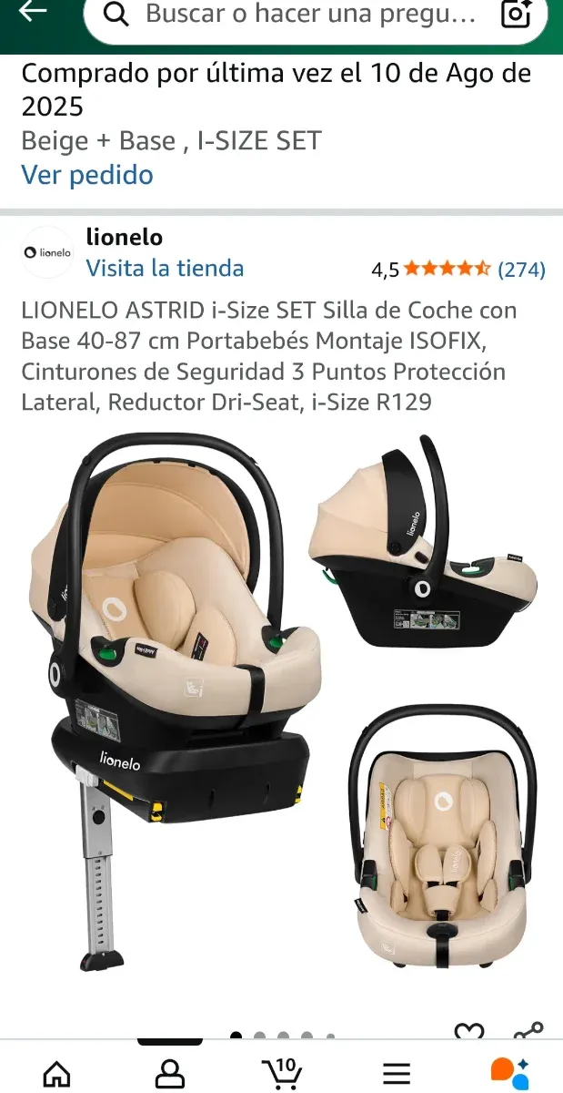 Detalles del productoSilla de coche para bebé Lionelo Astrid i-Size en color beige, con base ISOFIX.