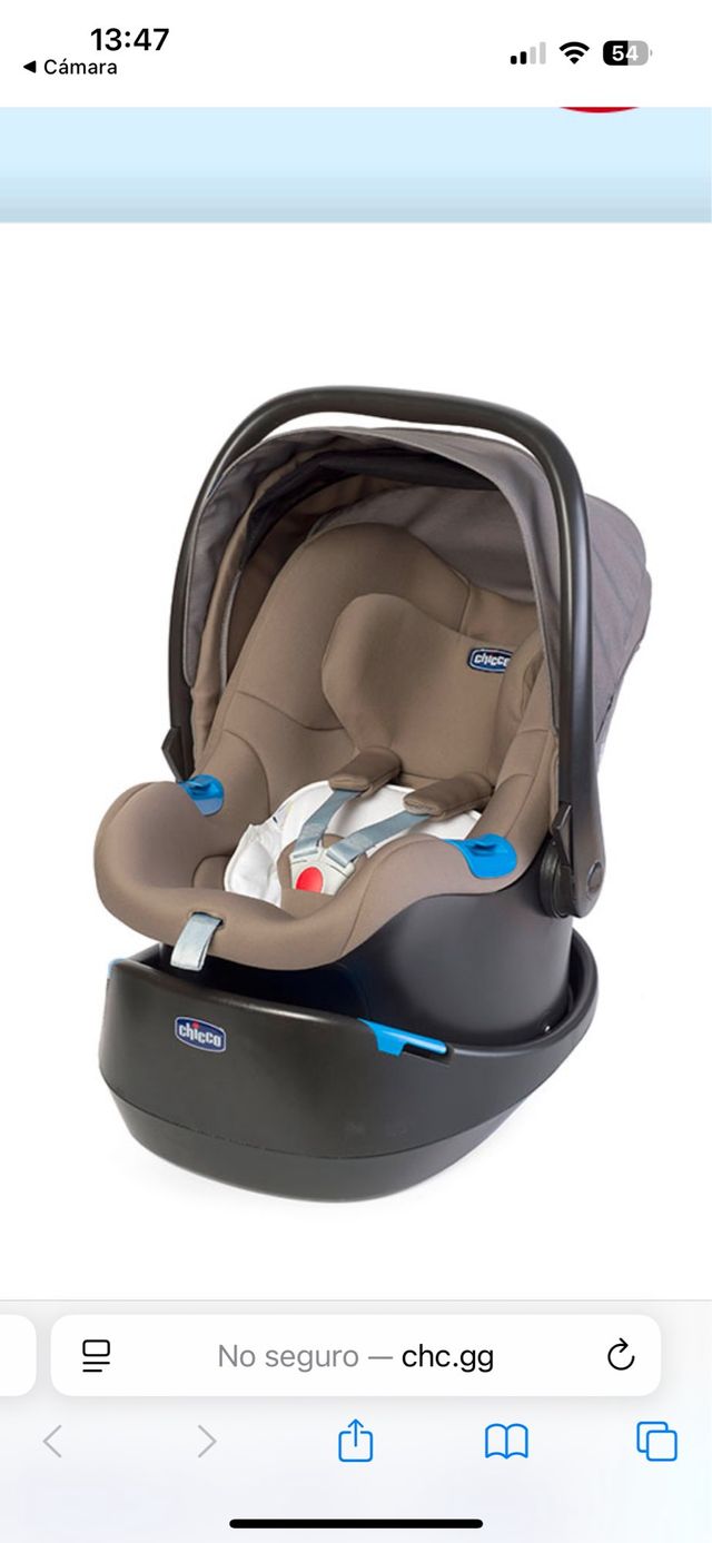 Detalles del productoSilla de coche para bebé en color marrón y base negra.