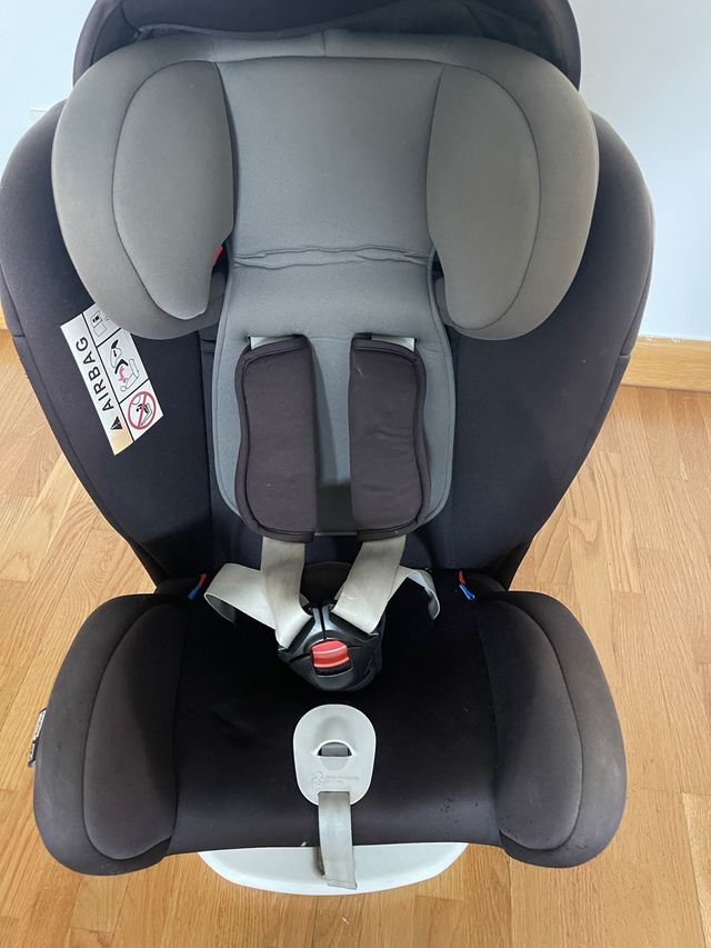 Detalles del productoSilla de seguridad para coche, diseñada para el transporte de bebés y niños pequeños,con signos de uso y desgaste normales y en algunos sitios descolorida por el sol.