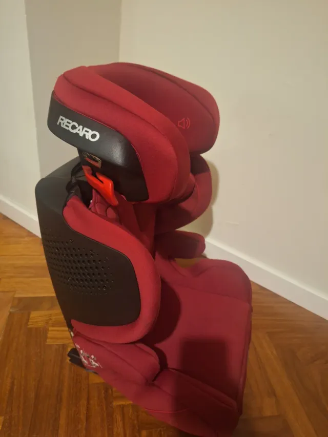 Silla de coche Recaro en color rojo, grupo 2-3. - Diseño ergonómico. - Reposacabezas ajustable. - Funda extraíble y lavable.