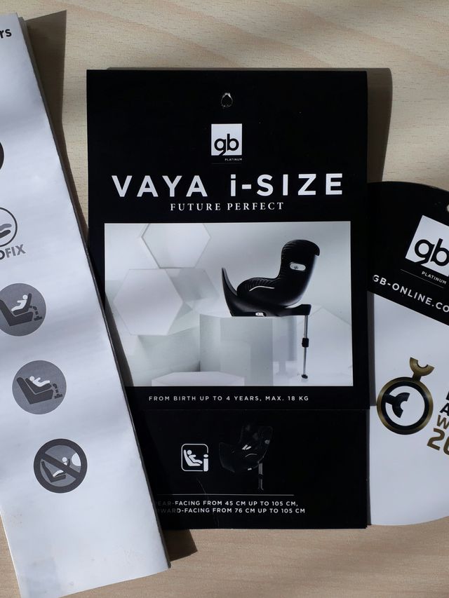 Detalles del productoSilla de coche Vaya i-Size (Grupo 0+/1 : 45-105cm, 18Kg max) gb Línea Platinum. El producto está en perfectas condiciones y se entrega impoluto! El reductor de gomaespuma acolchada (para los bebés más pequeños) es a estrenar. Producto top en seguridad y confort. Engineered and designed in Germany. El artículo está guardado en la caja de compra. Entrega en persona.