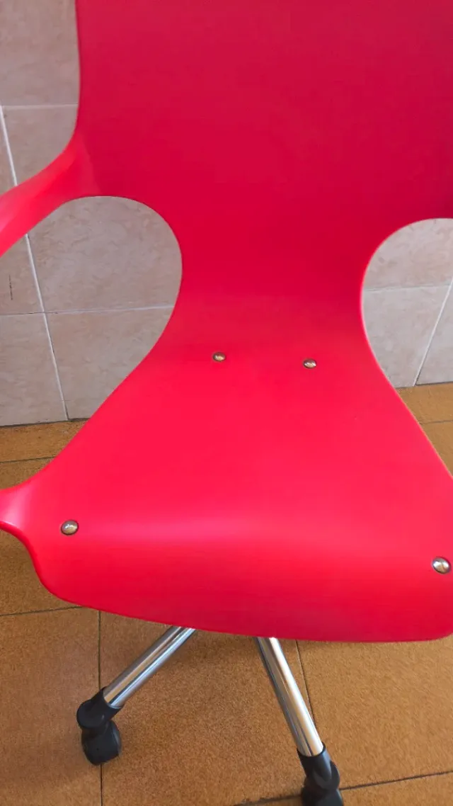 Silla de escritorio roja con base metálica