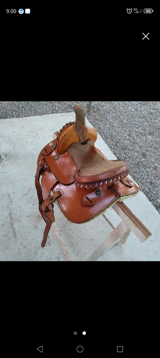 Detalles del productoSilla de montar estilo western para poni. Fabricada en cuero de color marrón.