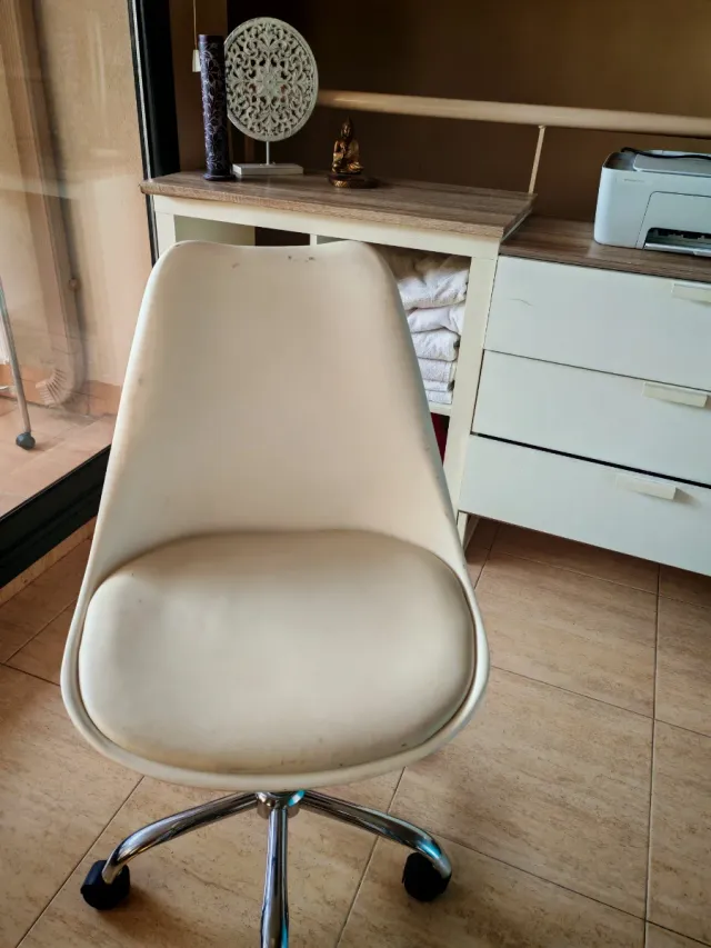 Silla de oficina beige y plateada