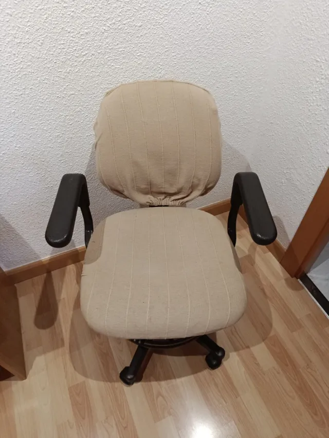 Silla de oficina giratoria beige y negra