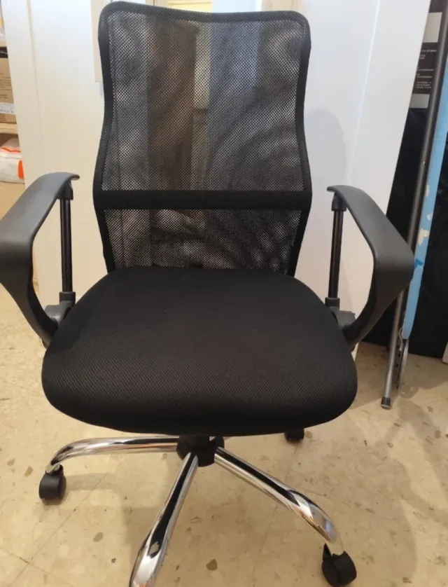 Muy poco uso, como nueva. Es muy cómoda, ya que el asiento es acolchado, la altura se puede ajustar y tiene apoya brazos; además, el respaldo tiene varios puntos a favor: -es de malla, con lo cual transpira y no suda la espalda -se puede dejar fijo o basculante (así descansa mucho mejor la espalda, en mi opinión) -tiene forma ergonómica que se adapta a la espalda. Soporta un peso de 110kg aprox y las medidas son 59,5-95,5/105-55cm (ver fotos para más detalles). No tengo el embalaje, se entrega montada.