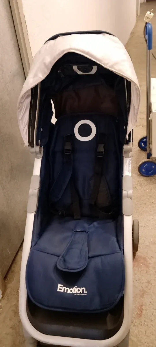 Detalles del productoCarrito de paseo Bebê Emotion de Babyhome en color azul y blanco. Es ligero y fácil de plegar.