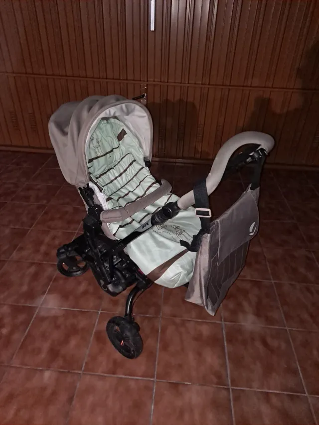 Detalles del productoSilla de paseo en color gris y verde menta, con un diseño moderno y funcional.