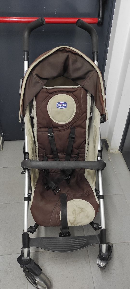 Silla en perfecto estado. Respaldo reclinable en 3 posiciones, barra de sujeción delantera. Tiene un poco roto la goma del manillar y necesita un buen lavado.