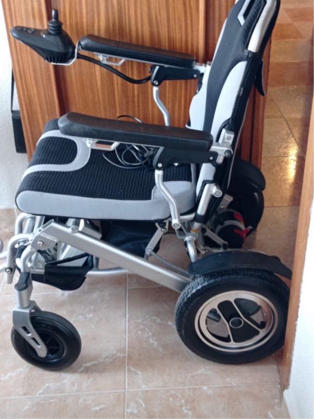 Detalles del productoSilla de ruedas eléctrica plegable que cuenta con ruedas traseras de 30 cm que le proporcionan una gran estabilidad. Su autonomía es de hasta 15 km y es capaz de soportar hasta 135 kg de peso.