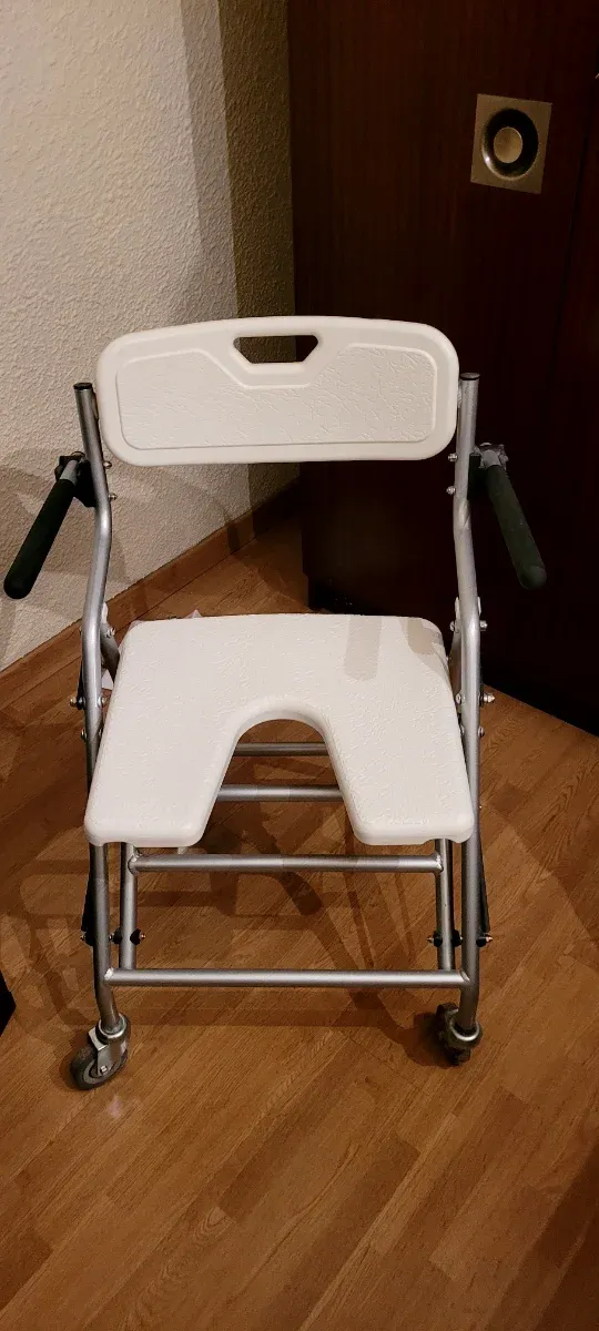 Silla de ruedas especial para baño. Perfecto estado, se puede guardar doblada