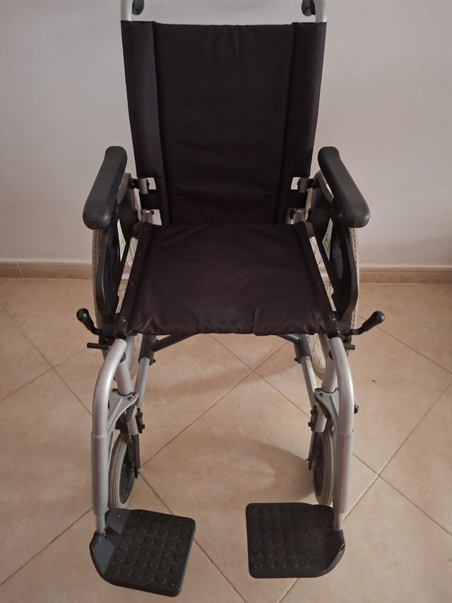 Detalles del productoSilla de ruedas ligera y plegable, ideal para facilitar el transporte y almacenamiento.