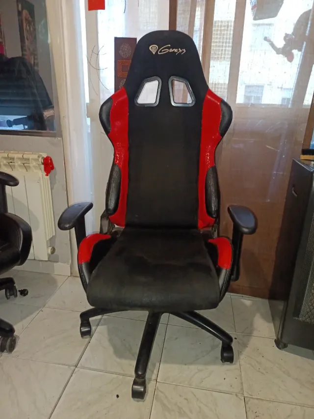 La silla necesita limpieza y tiene piel de cocodrilo pero sus funciones de subir reclinar y ruedas en perfecto estado ideal para algún chiquillo para el ordenador o consola