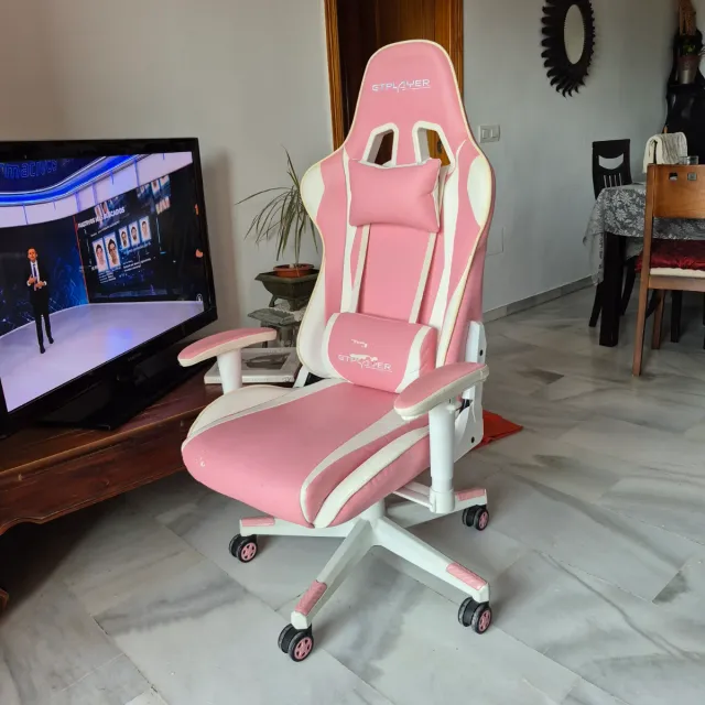 Silla Gamer GTPLAYER Rosa y Blanca Reclinable