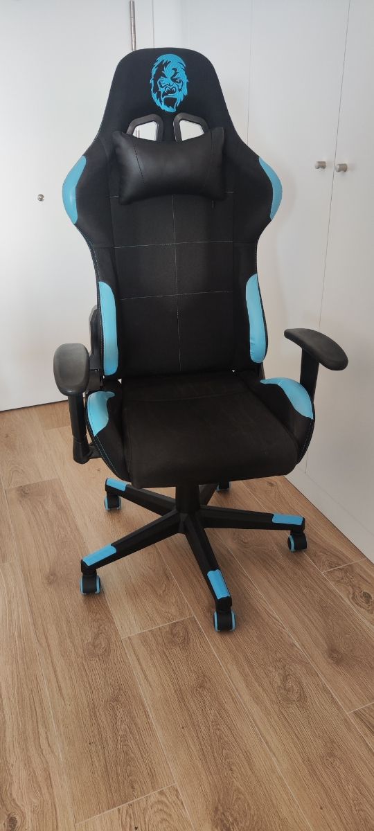 Silla de gaming con un diseño moderno en negro y detalles en azul. En buen estado, tiene un año de uso. - Diseño ergonómico. - Altura ajustable.