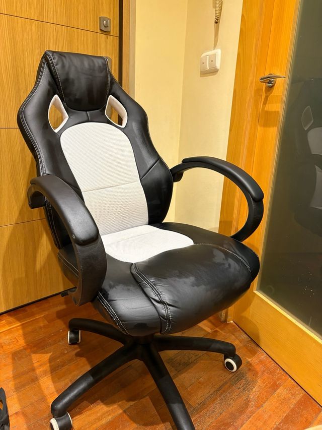 Silla de estilo gaming con ruedas. se encuentra en buen estado, solo tiene el arañazo mostrado detrás