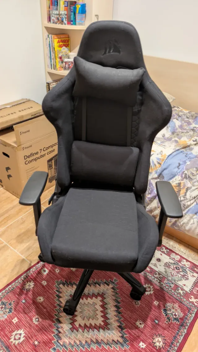Detalles del productoSilla de gaming de la marca Corsair en color negro y tapicería de tela. PRECIO NEGOCIABLE