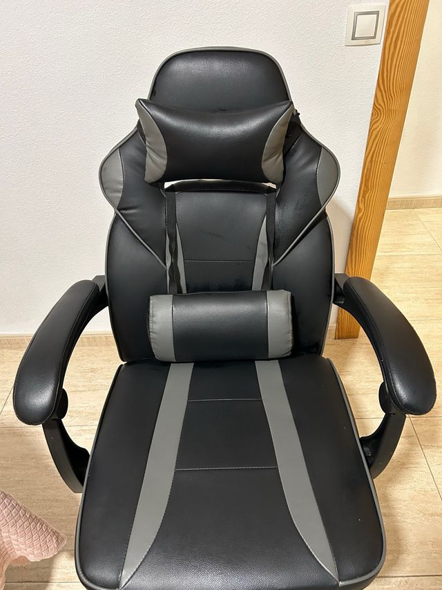 Detalles del productoSilla de estilo gaming en color negro con detalles en gris. Diseñada para ofrecer comodidad. No tiene uso ya que me tuve que mudar y no me la lleve sin grietas en tapicería ni descosidos