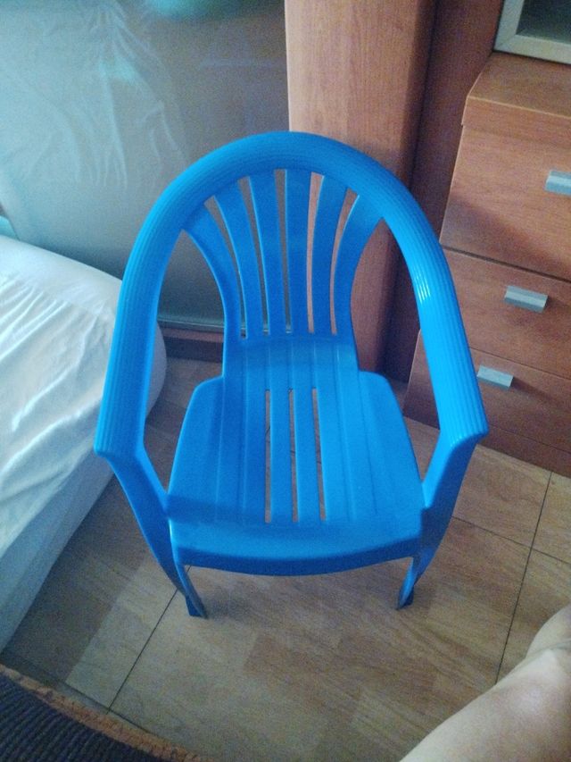 Preciosa silla infantil de plástico, color azul. Ideal para niños pequeños. - Estructura resistente. - Diseño cómodo y ergonómico. - Fácil de limpiar.