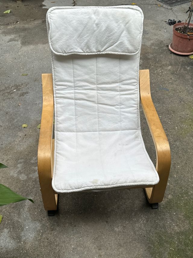 Detalles del productoSilla infantil con estructura de madera y cojín acolchado.