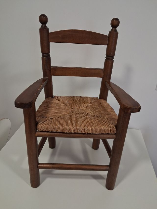 Silla infantil de madera y enea