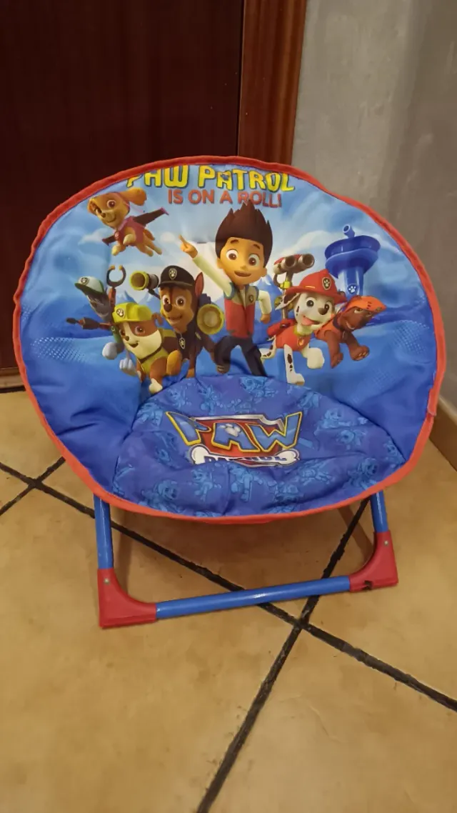 Silla infantil con diseño de la Patrulla Canina. - Estructura de metal. - Tejido azul con estampado de personajes. - Plegable