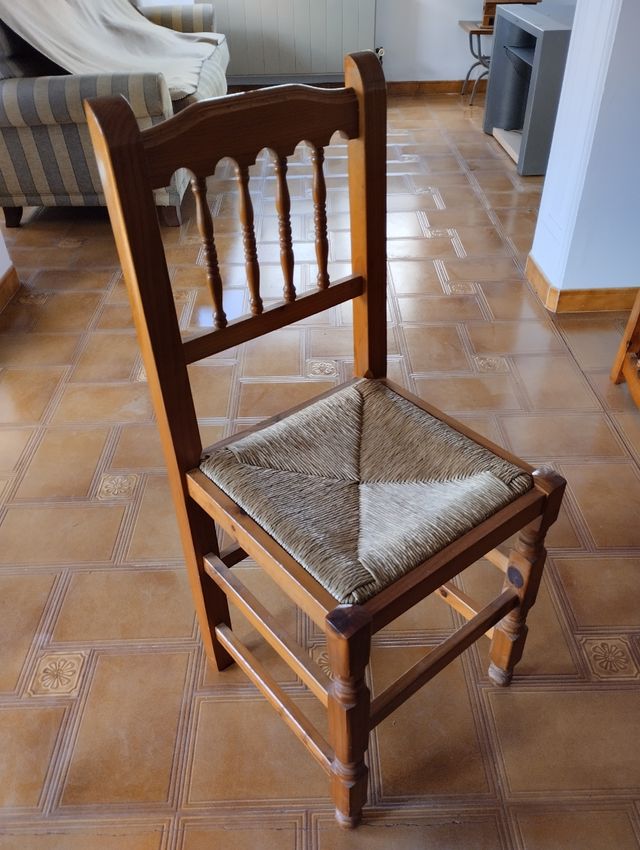 Disponibles 12 sillas de madea maciza y mimbre, casi nuevas. Rústicas y de color precioso. PRECIO POR SILLA.