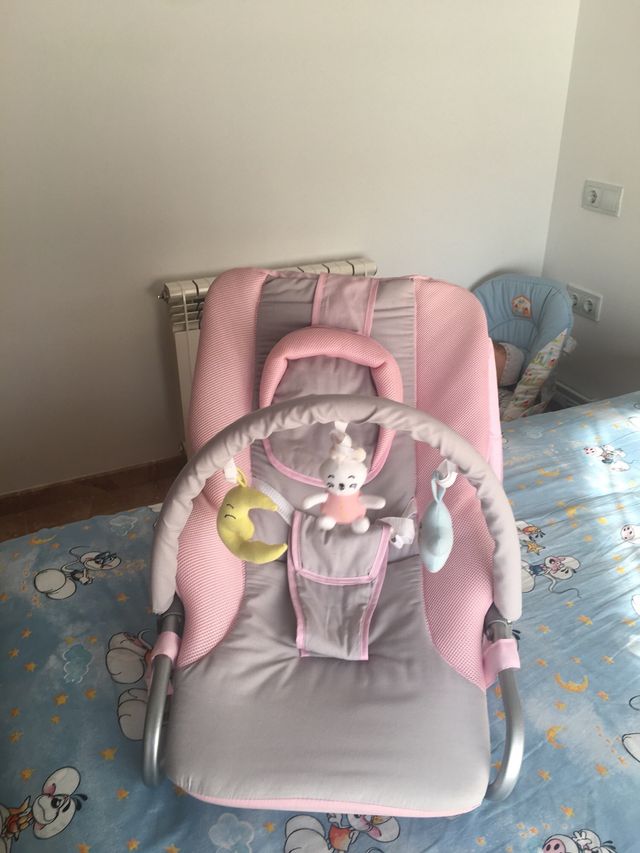 Detalles del productoPreciosa silla mecedora para reborn, en tonos rosas y grises.