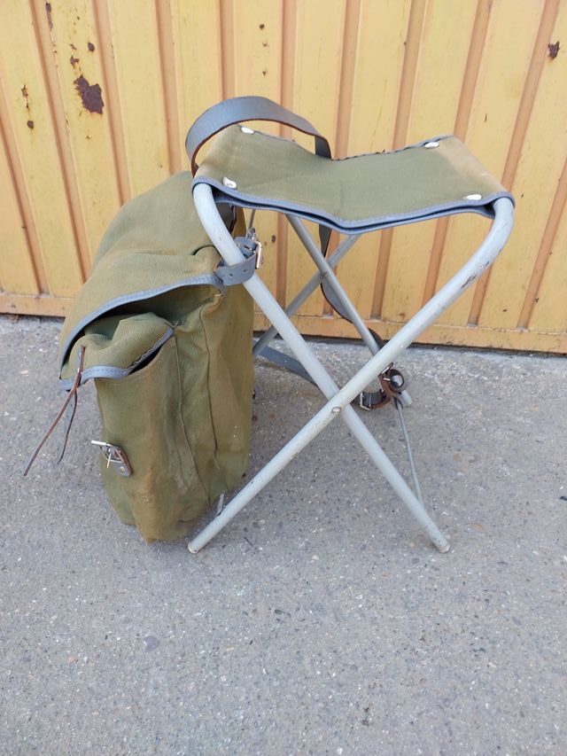 Silla plegable con mochila de cuero incorporada.ideal para caceria, pesca,playa,etcétera