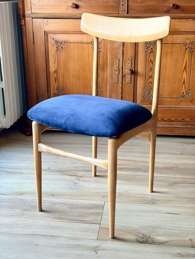 Silla Nórdica Años 60 Madera de haya y piel natura