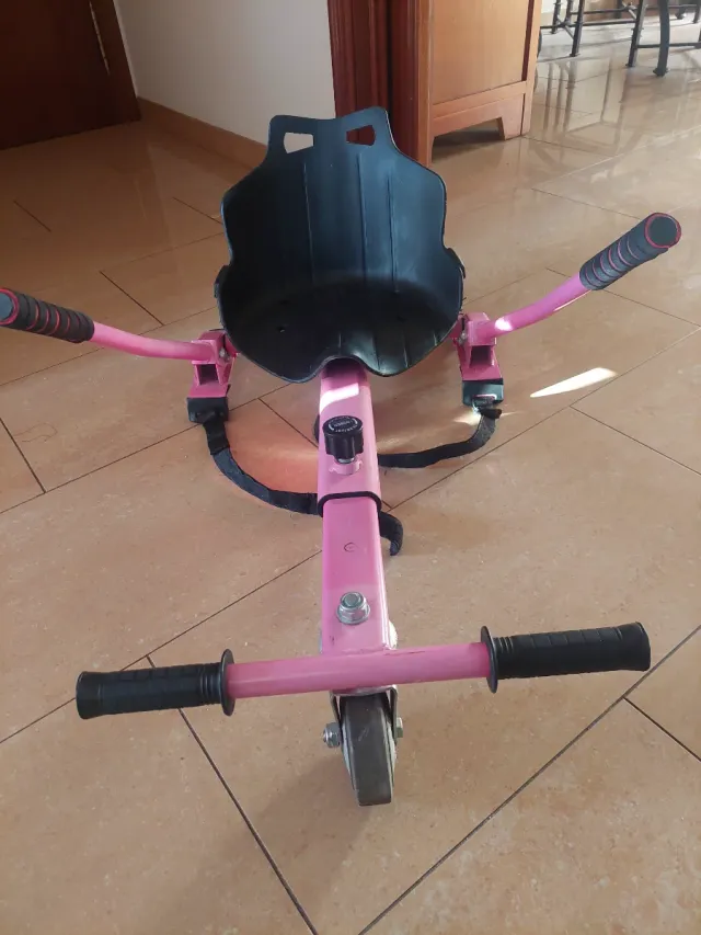 Accesorio para patinete tipo hoverboard, con asiento y manillar. - Color rosa. - Asiento negro. - Manillar con empuñaduras negras.