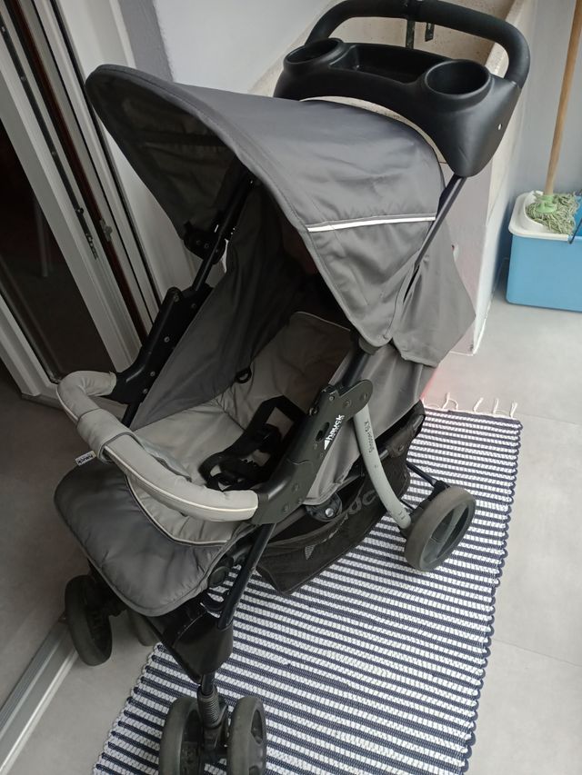 Se cierra con facilidad, cómoda ,se levanta parte de los pies ,postura de varias inclinaciones desde todo sentado a totalmente acostado ,tiene para llevar movil, llave y dos compartimentos para botellas o vasos ,en parte de agarrar *capacho del mismo color para cuando es bebé.,creo le falta boton pero se cierra igual,