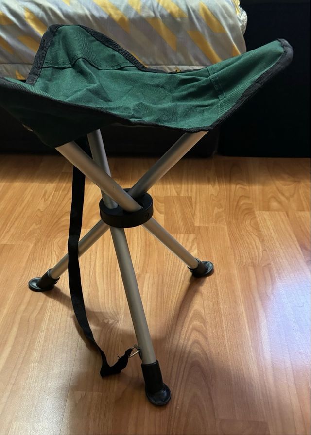 Detalles del productoSilla pegable de pesca, montaña o diversidad de usos, soporta maximo 110 kilos de peso, altura aproximadamente 36 cm y va con su funda trasparente y correa para llevar colgada. (opcion de otra silla igual, entonces dos sillas, precio pack 22 € las dos sillas iguales, una 12 €)