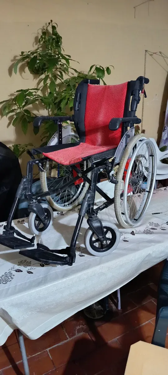 Silla de ruedas de aluminio marca FORTA LINE PLUS buen estado, ruedas extraíbles se pliega totalmente, doble freno, se puede usar como caminador, pesa muy poco.