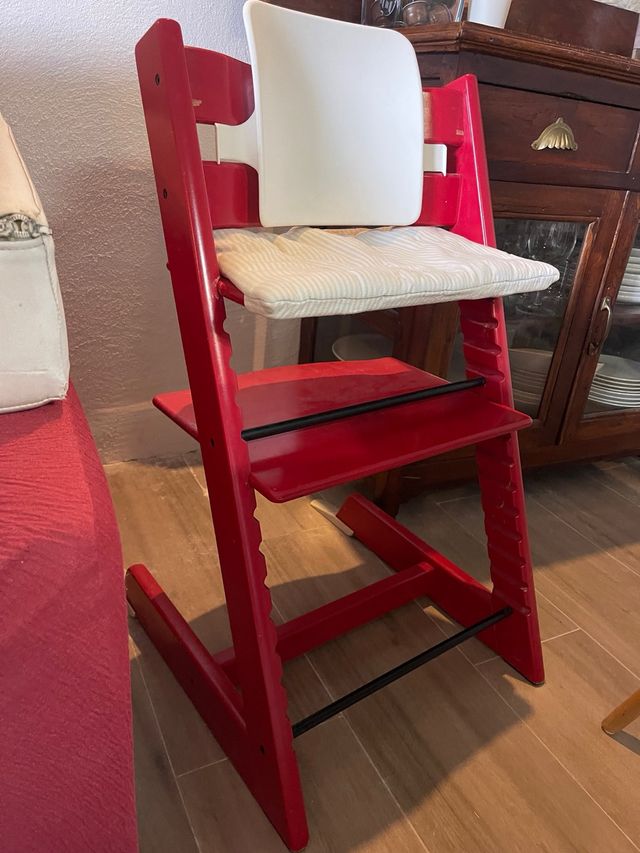 Detalles del productoPreciosa silla Stokke Tripp Trapp de color rojo. Está en muy buen estado y lista para usar.