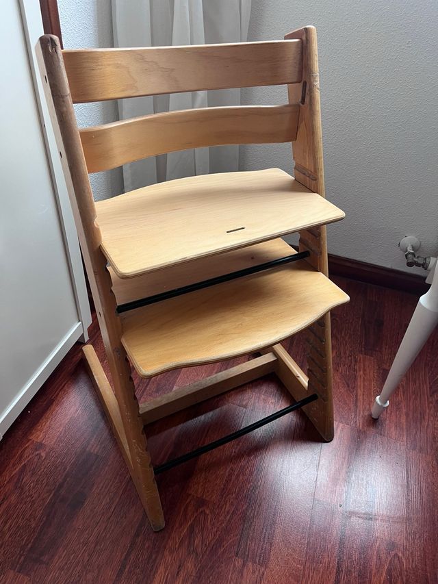 Detalles del productoTrona de madera de la marca Stokke, un clásico para los más pequeños.